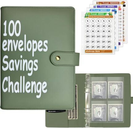 Price: (as of – Details) Product description 💰【100 Envelopes Challenge Kit】 1x PU leather savings challenges book with card slot,