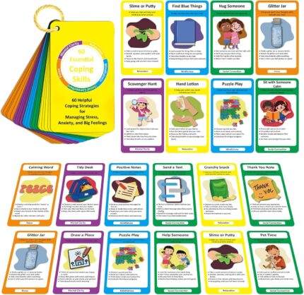 32 Coping Skills Cards with 60 Strategies – Therapy Tools for Teens & Adults to Manage Stress, Anxiety & Emotions – Durable Mindfulness & Emotional Intelligence Deck for Home, School & Counseling Use
