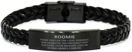 Roomie Remembrance Braided Leather Bracelet, Thank You for The Love, Guidance, and Laughter, Best Memorial Gifts for Loss of Loved One, Sympathy Gifts for Men Women