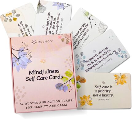 MESMOS 52 Mindfulness Cards with Action Plans. Relaxation Stress Relief Gifts for Women, Positive Affirmation Cards, Anxiety Relief Items, Meditation Self Care Kit, Relaxing Spiritual Gifts for Women