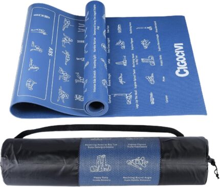 Instructional Travel Yoga Mat with 75 Asanas Poses & Exercises – Christmas Gifts for Wife and Girls, Non-slip Exercise Mat for Home Workout, Includes Carrying Bag, 68″x24″x0.25″