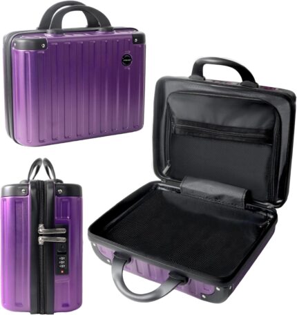14 Inch Portable Makeup Travel Case Hand Luggage, Hard Shell ABS Cosmetic Organizer with Safety Lock, Small Carry-On Travel Bag for Women(Purple)