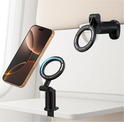 Universal 360° Magnetic Airplane Phone Holder Mount – Strong Clamp, Compatible with iPhone & All Smartphones, Hands-Free Viewing for Travel & Home Use