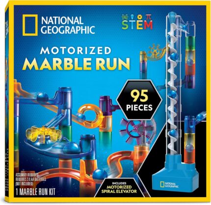 National Geographic Marble Run with Motorized Elevator – 95-Piece Marble Maze Kit with Motorized Spiral Lift, 20 Marbles, Perpetual Motion Machine, STEM Gifts for Boys and Girls, Kids Physics Toys
