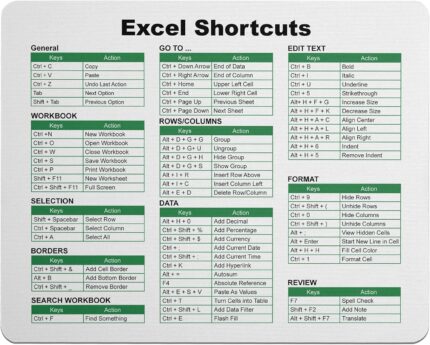 Excel Shortcuts Mouse Pad – 7.75 x 9.25 x 0.2 inches – 66 Commands – The Ultimate Productivity Tool – Easy Reference Guide for Efficient Excel Navigation (Green)