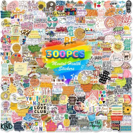 300pcs Mental Health Motivational Quotes Decals for Laptop, Water Bottles & Skateboard – Positive Words Stickers Pack