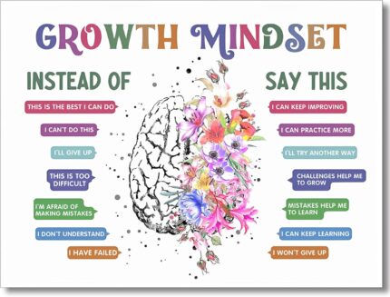FaCraft Growth Mindset Posters – 12″ x 18″ Growth Mindset Positive Sayings Bulletin Board Decorations Motivational Inspirational Classroom Posters Homeschool or Preschool Elementary Teacher Must Haves