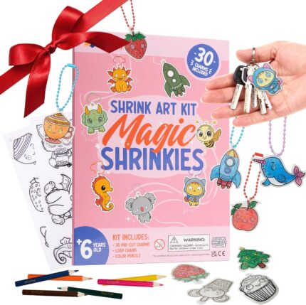 Shrinking Art Set – Craft Kit for Kids – Magic Shrinkies Kit with 30 Pre-cut Charms & Accessories – Shrink Plastic Sheets – DIY Keychain & Charms for Party Favor – Art and Craft for Kids 70pcs
