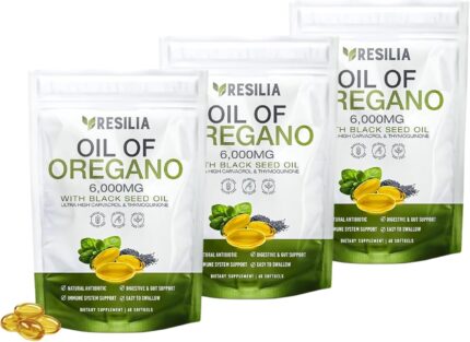 Resilia Softgels with Black Seed Oil 6000mg – Organic Oregano Oil Capsules for Immune & Digestive Support – Non-GMO, Gluten-Free Softgels – Natural Herbal Wellness Supplement (60 Count)