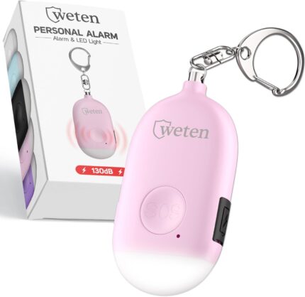Weten Rechargeable Personal Alarm Keychain – 130dB Siren & LED Light – Stylish Personal Safety Alert for Women to Carry – Panic Button Alarm for Security – Rape Whistle for Self Defense (Pink)