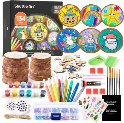 Klever Kits Wooden Painting Craft Kit-Glow in The Dark- Arts and Crafts for Kids Ages 6-12 Wood Slices with Art Activitiy Supplies, Wood Crafts for Boys Girls Party Gift Easter Painting