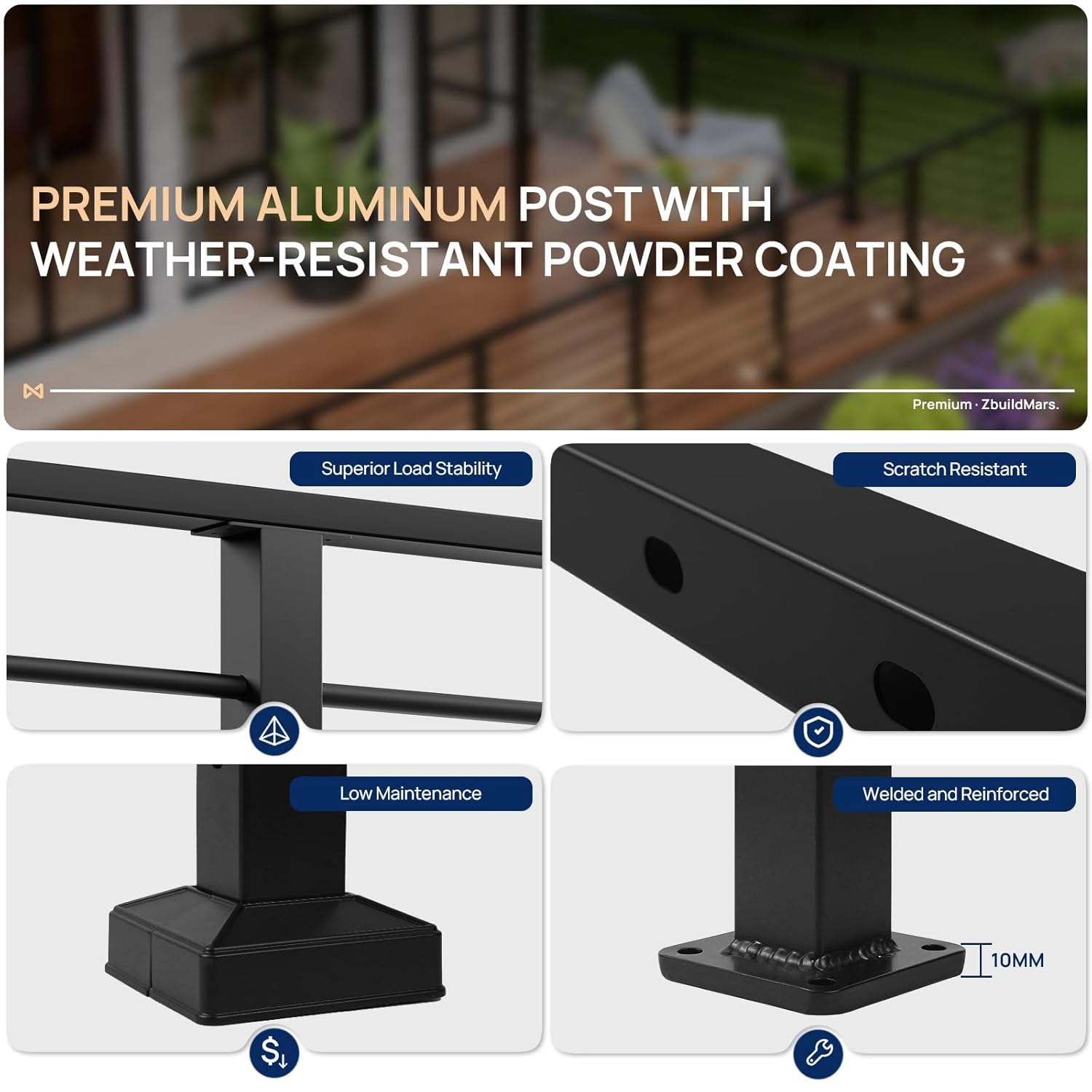 Weather-Resistant Outdoor Powder Coating: Crafted from premium aluminum with a black outdoor powder-coated finish, this railing post resists rust, corrosion, and harsh weather conditions. Ideal for homeowners in coastal areas or regions with heavy rain and sun exposure, it ensures long-lasting durability with minimal maintenance.