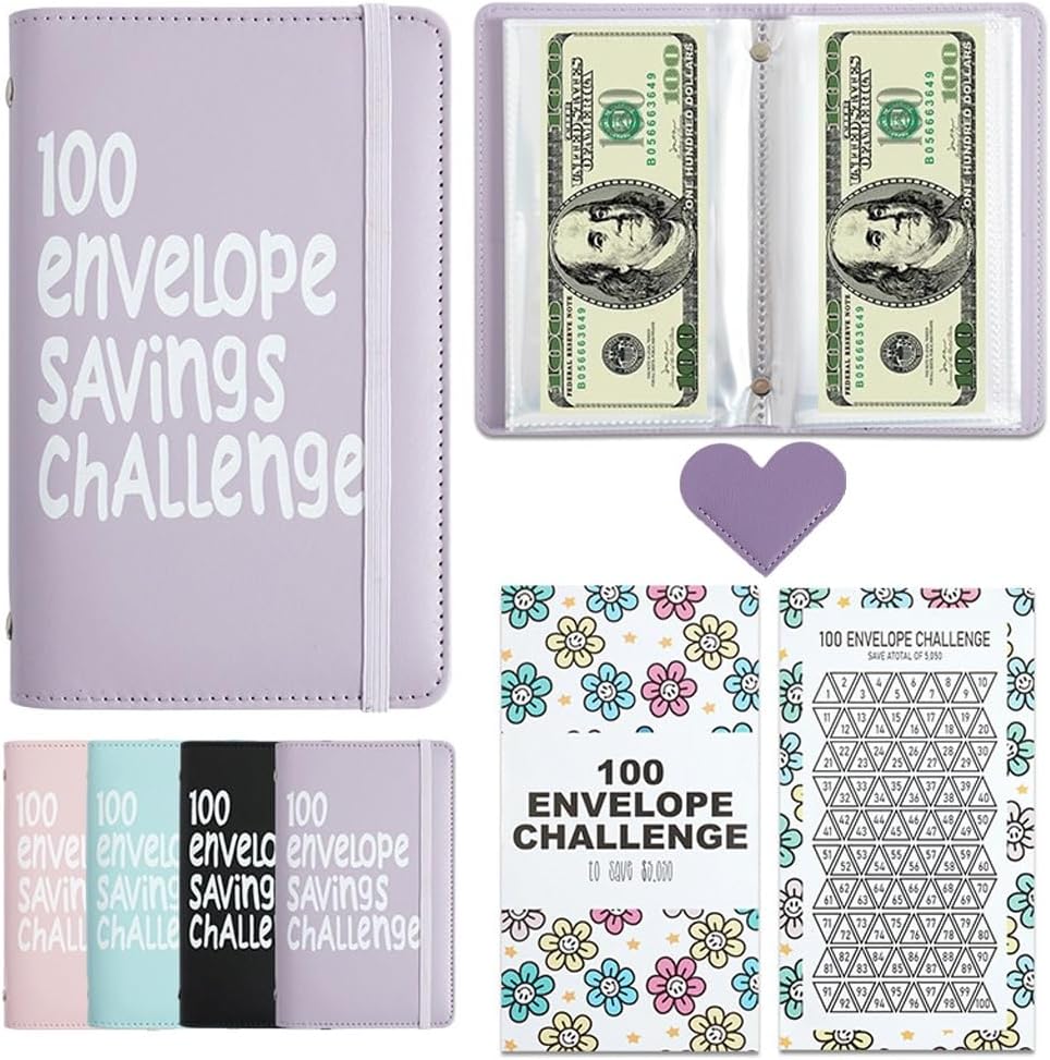 100 Days Money Saving Challenge Coin Envelope Budgetstorage Book, Mini 100 Envelopes Money Saving Challenge Book, Budget Binder for Cash Saving, Easy and Fun Way to Save $5,050(Purple)