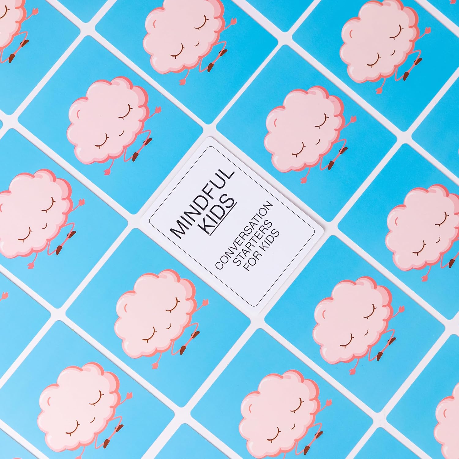 100 CARDS FOR MINDFUL CONVERSATION STARTERS FOR KIDS Includes 99 engaging prompts + 1 instruction card for meaningful discussions around feelings, gratitude, imagination, and focus.