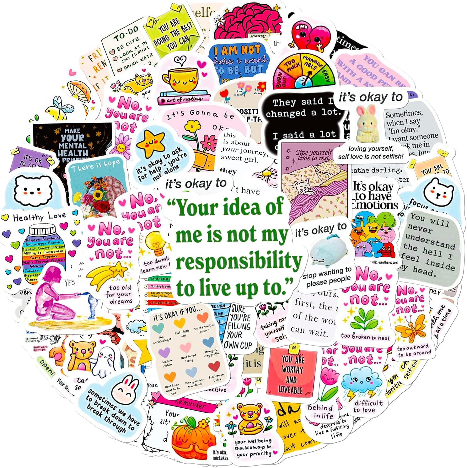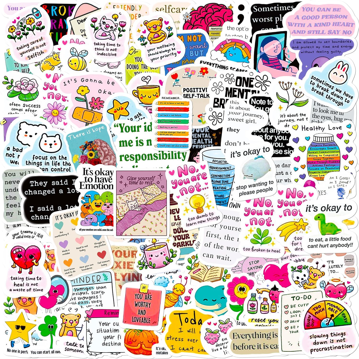 100 Pcs Mental Health Stickers, Cute Anxiety Waterproof Vinyl for Laptop, Phone, Water Bottle, Luggage, Kids Teens Boys Girls Women