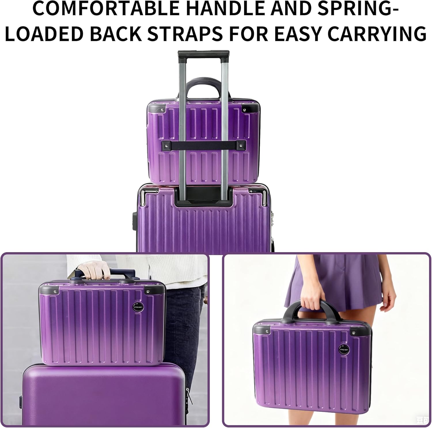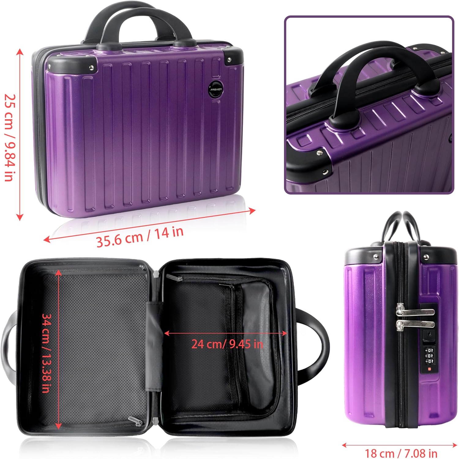 14 Inch Portable Makeup Travel Case Hand Luggage, Hard Shell ABS Cosmetic Organizer with Safety Lock, Small Carry-On Travel Bag for Women(Purple)