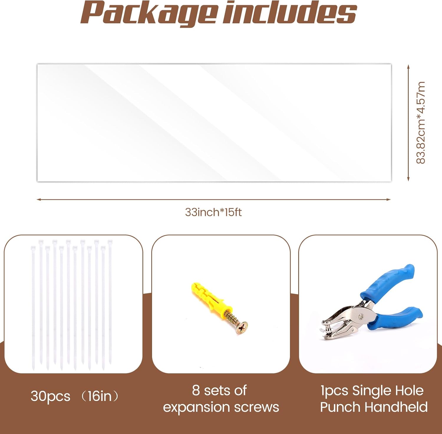 Easy to Install: Includes zip ties and a handheld hole punch, making it quick and simple to secure the 15ft mesh barrier to most indoor and outdoor railings without tools or complex setup.