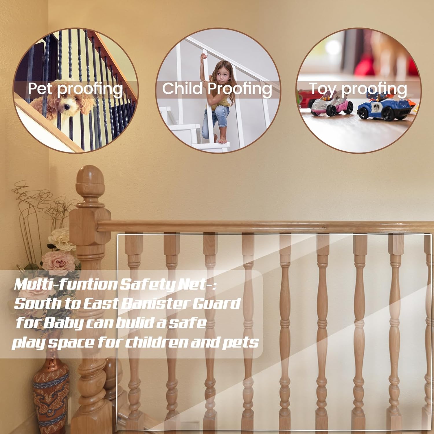 Child & Pet Protection: Acts as an effective banister safety net to prevent children and pets from slipping through rail gaps or climbing over, adding a layer of safety to elevated spaces.