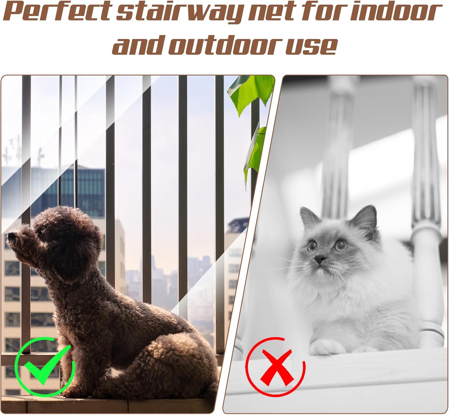 Indoor & Outdoor Use: Weather-resistant material is ideal for staircases, balconies, porches, or deck railings, suitable for year-round childproofing and pet-proofing in any environment.