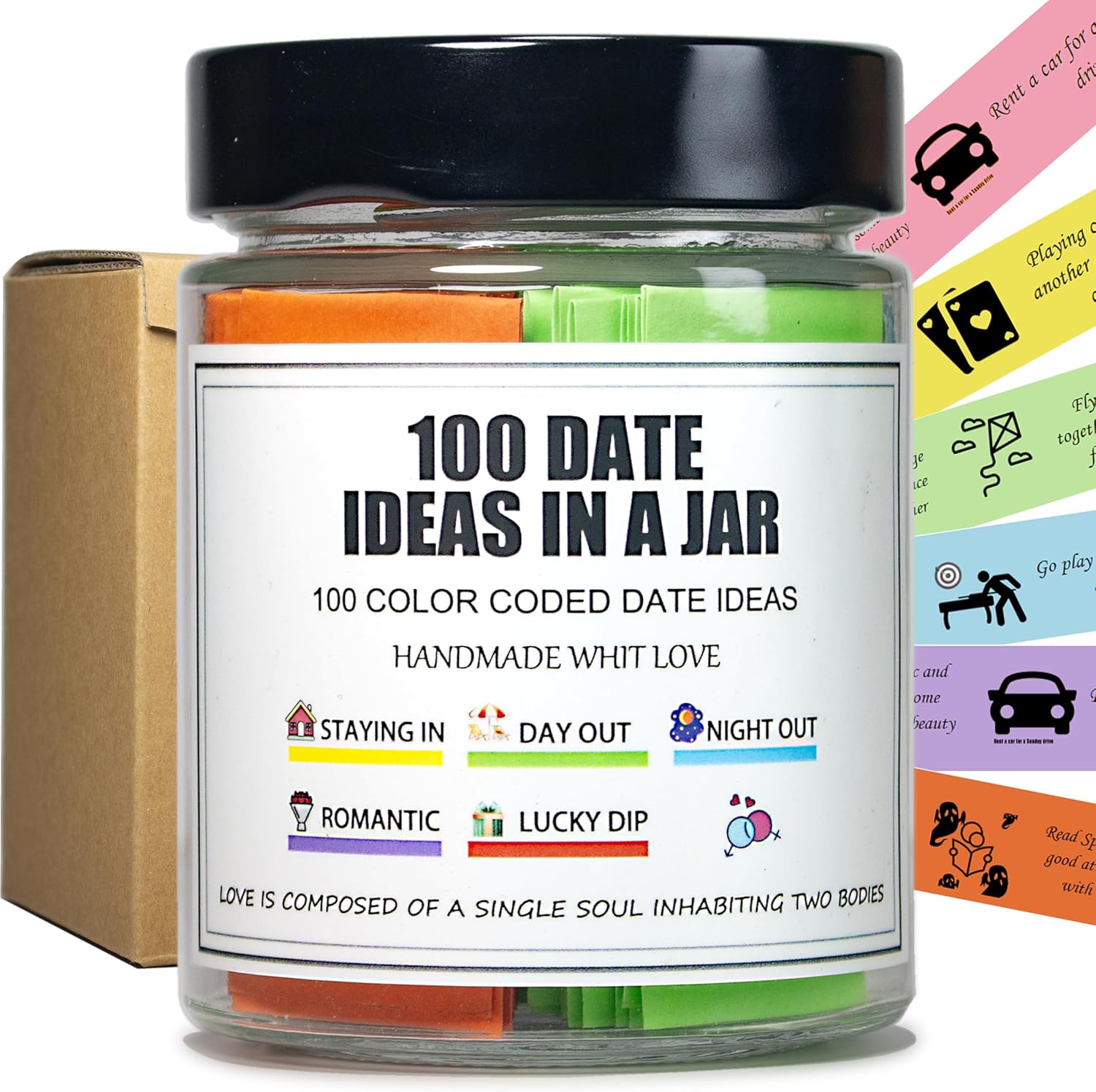【Almost the most comprehensive number of ideas】Inside the jar were 100 slips of paper, each with two date ideas, for a total of 200 ideas. They are carefully collected and designed, and each date idea is accompanied by a simple pattern that adds to the fun.