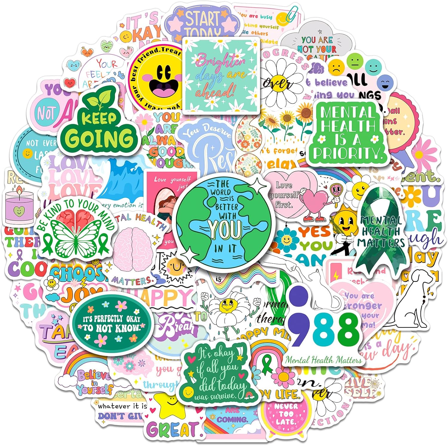 200 PCS Mental Health Stickers, Mental Health Awareness Stickers for Water Bottle Laptop, Waterproof Decals for Therapist Adults Teens Kids