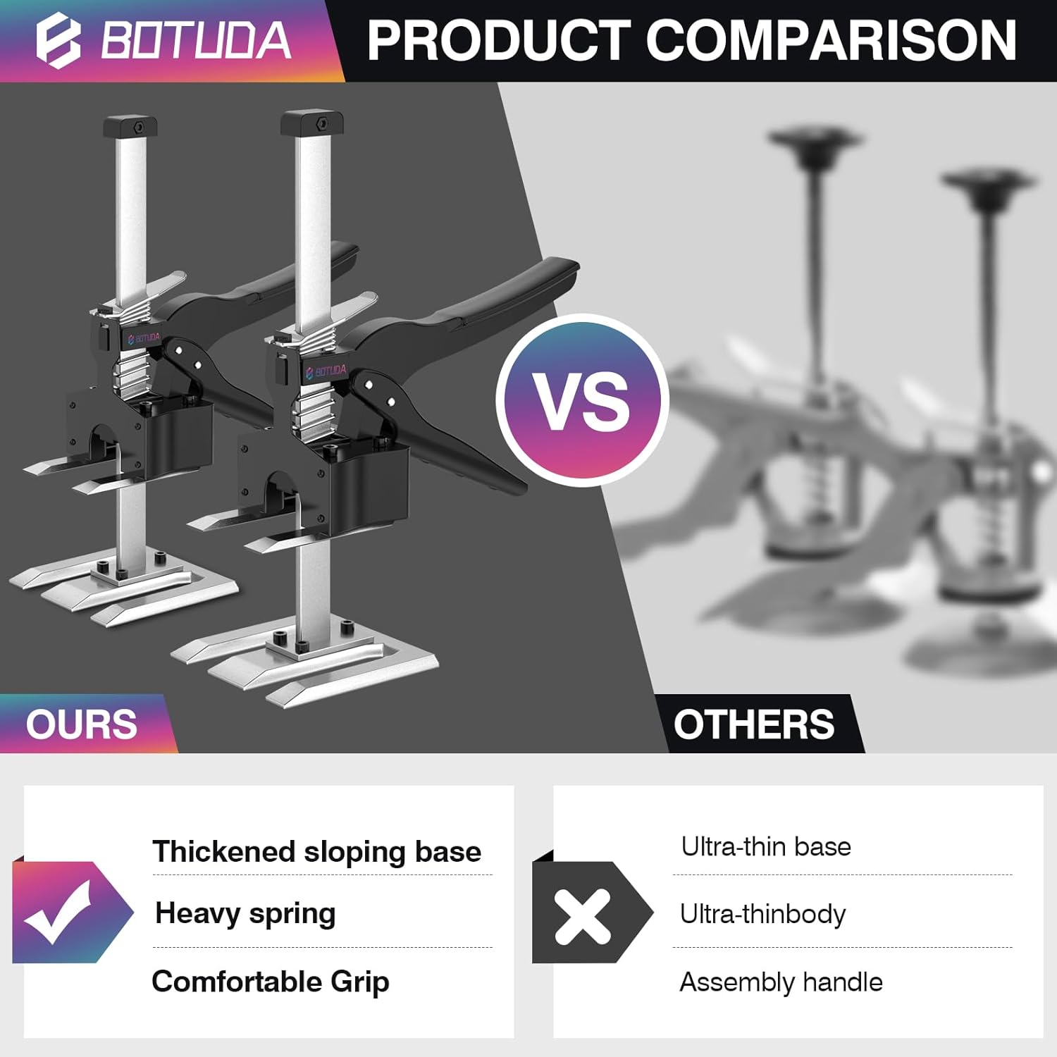 UPGRADED MULTI-FUNCTION LIFTING ARM — The furniture lifter effort elevator can be used for cabinet jacks, door and window lifting, floor jacks, drywall lifting, tile height adjustment, wood lifting and so on. With a combined carrying capacity of 360 pounds and a maximum lifting height of 6.7 inches, the two can meet the needs of most household use cases Furniture