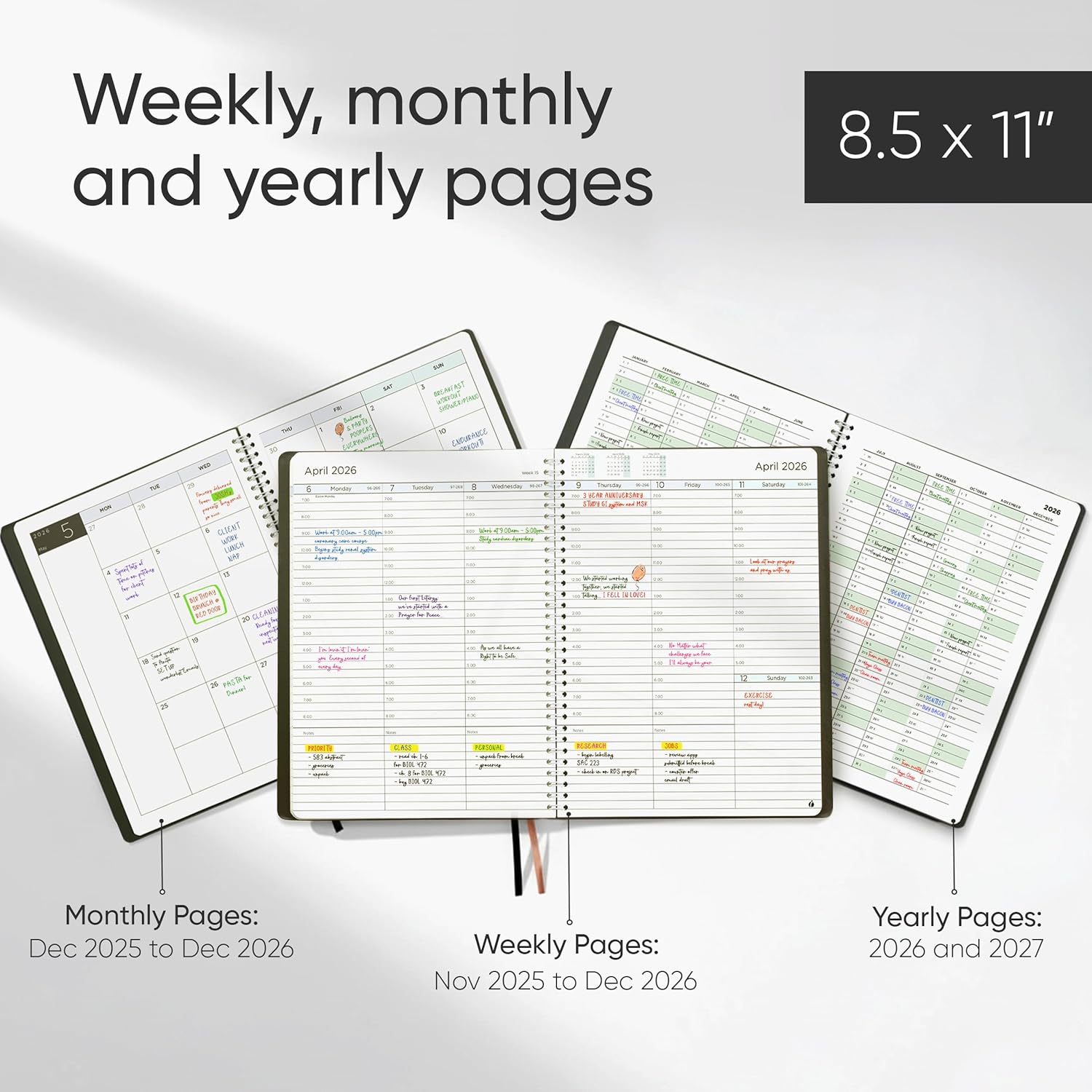 Customers find this planner to be of the best quality, with roomy pages and good value for money. They appreciate its functionality for busy schedules, with one customer noting it helps manage time better. The planner features both monthly and weekly sections, and customers like its great design and organization capabilities. They find it durable, with pages that don’t tear out, and one customer mentions it covers the entire 2026 calendar year.
