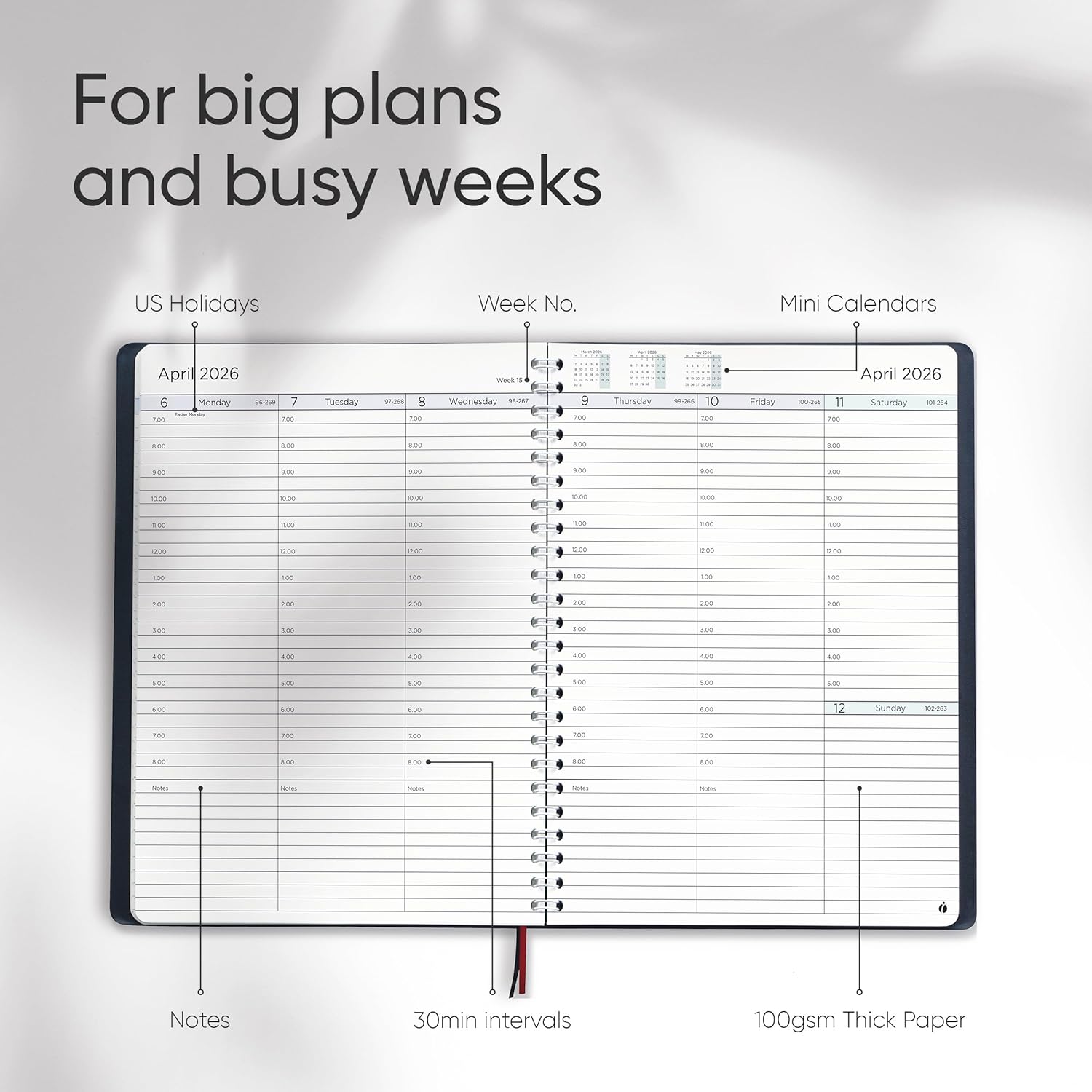 ✔️Thick and Premium Paper – Unlike other diaries with thin & flimsy paper, our extra thick, premium quality pages reduce ink bleed. Keeps your planning neat and attractive in your appointment book 2026