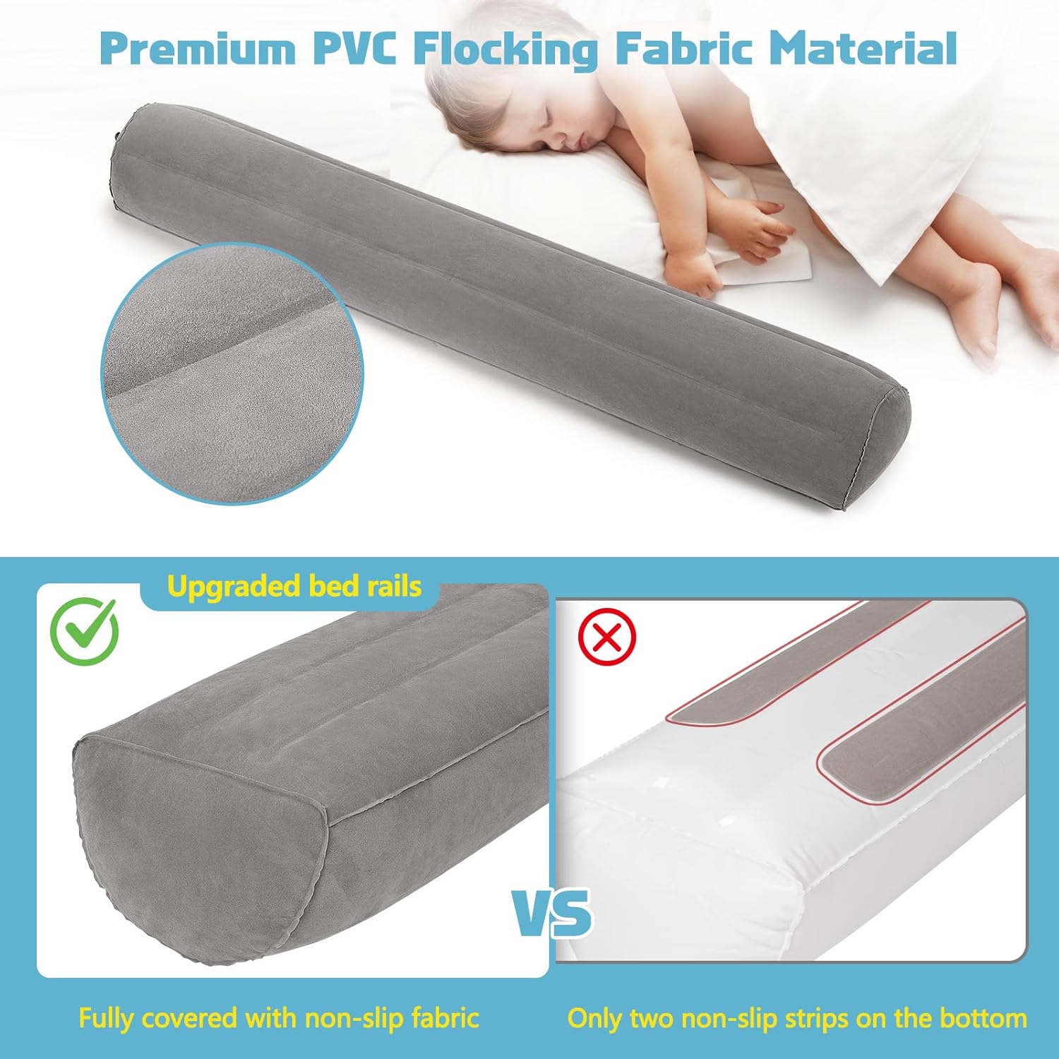 USHMA portable bed rails for toddlers are fully covered with non-slip soft flocking fabric to ensure the toddler inflatable bed rails are firmly in place. .