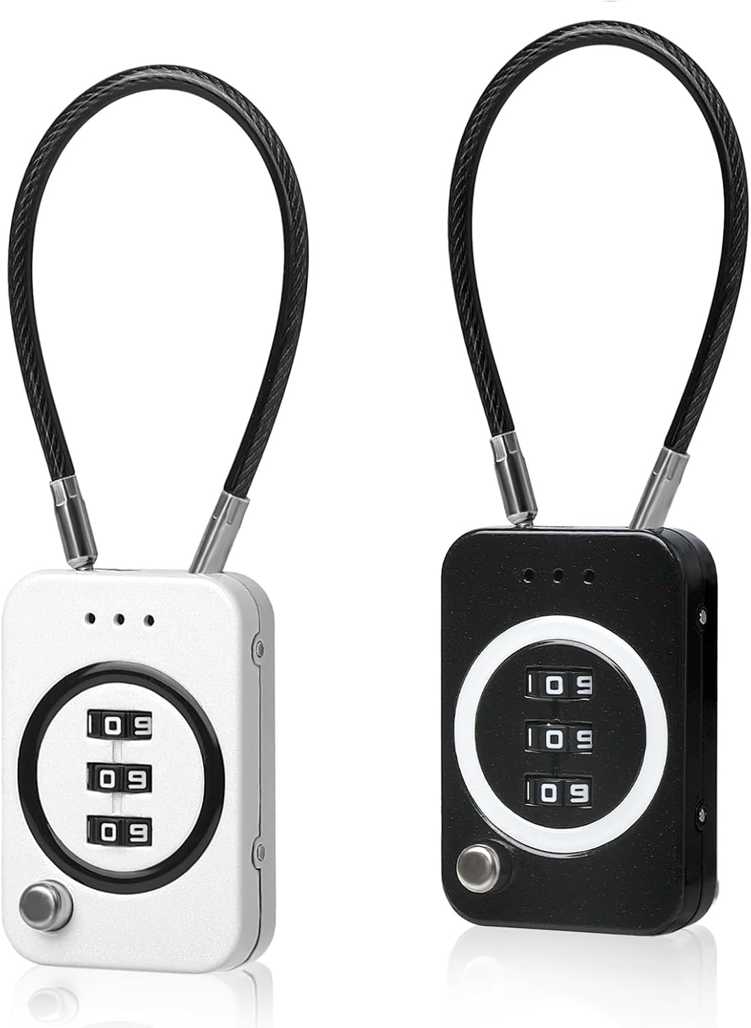2PCS Combination Padlock for School Lockers, Travel Cable Locks, Tent & Bag Lock – Secure 3-Digit Lock for Luggage, Backpacks, and Outdoor Gear(Black + White)