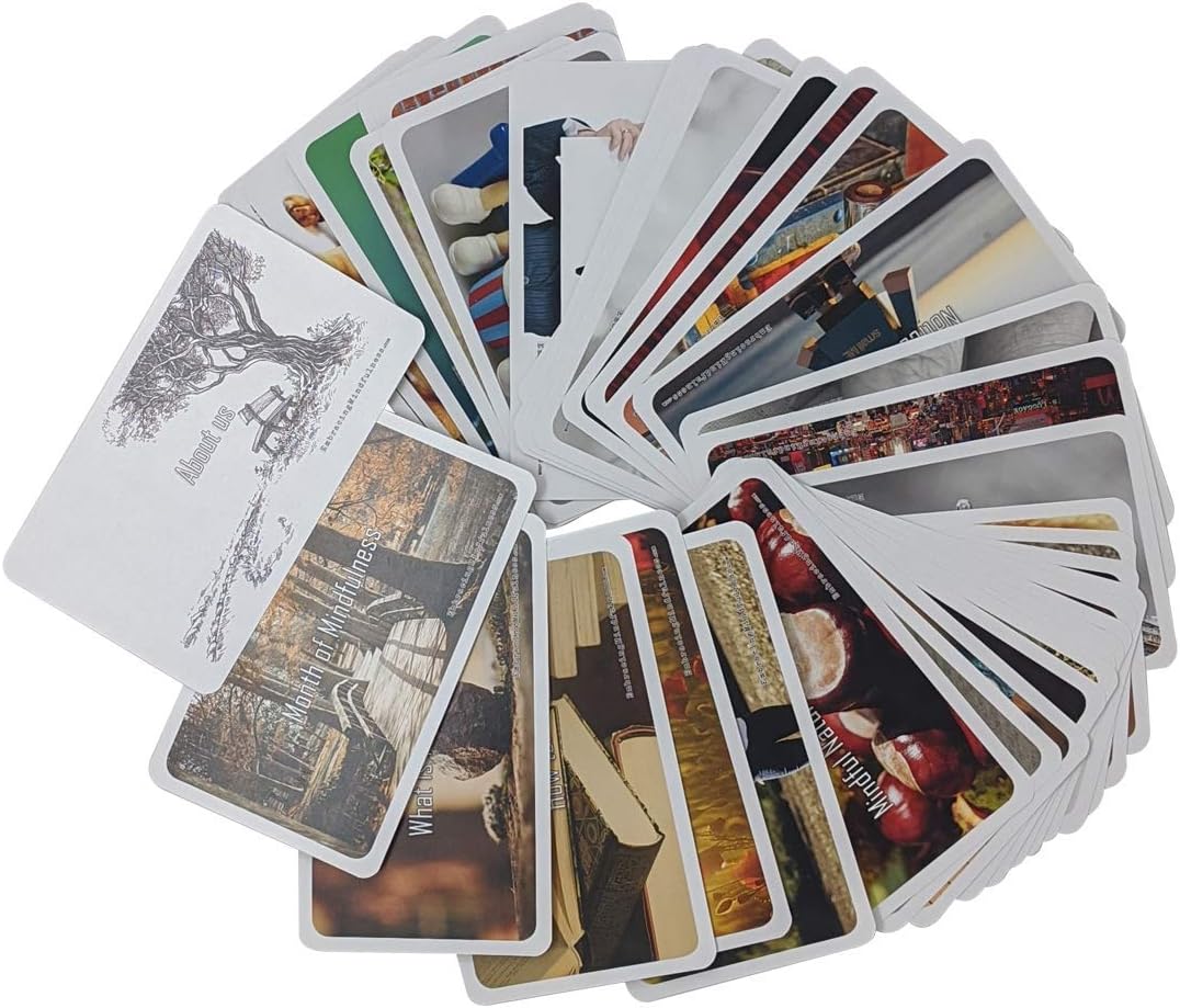 Neuro research has shown us our brain needs about 30 days to adjust to a habit change. This is the goal behind our “A Month of Mindfulness” products. 31 daily tasks designed to enhance your mindfulness. Printed on high quality postcard-sized paper with a related image on the reverse.