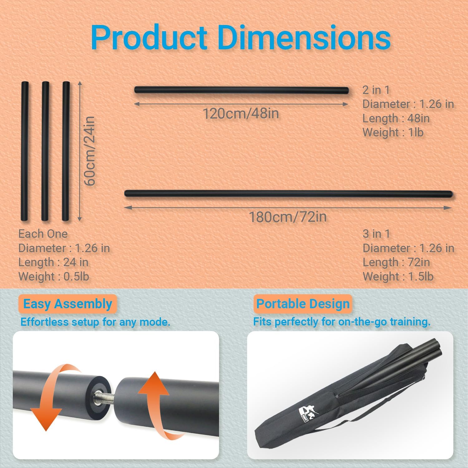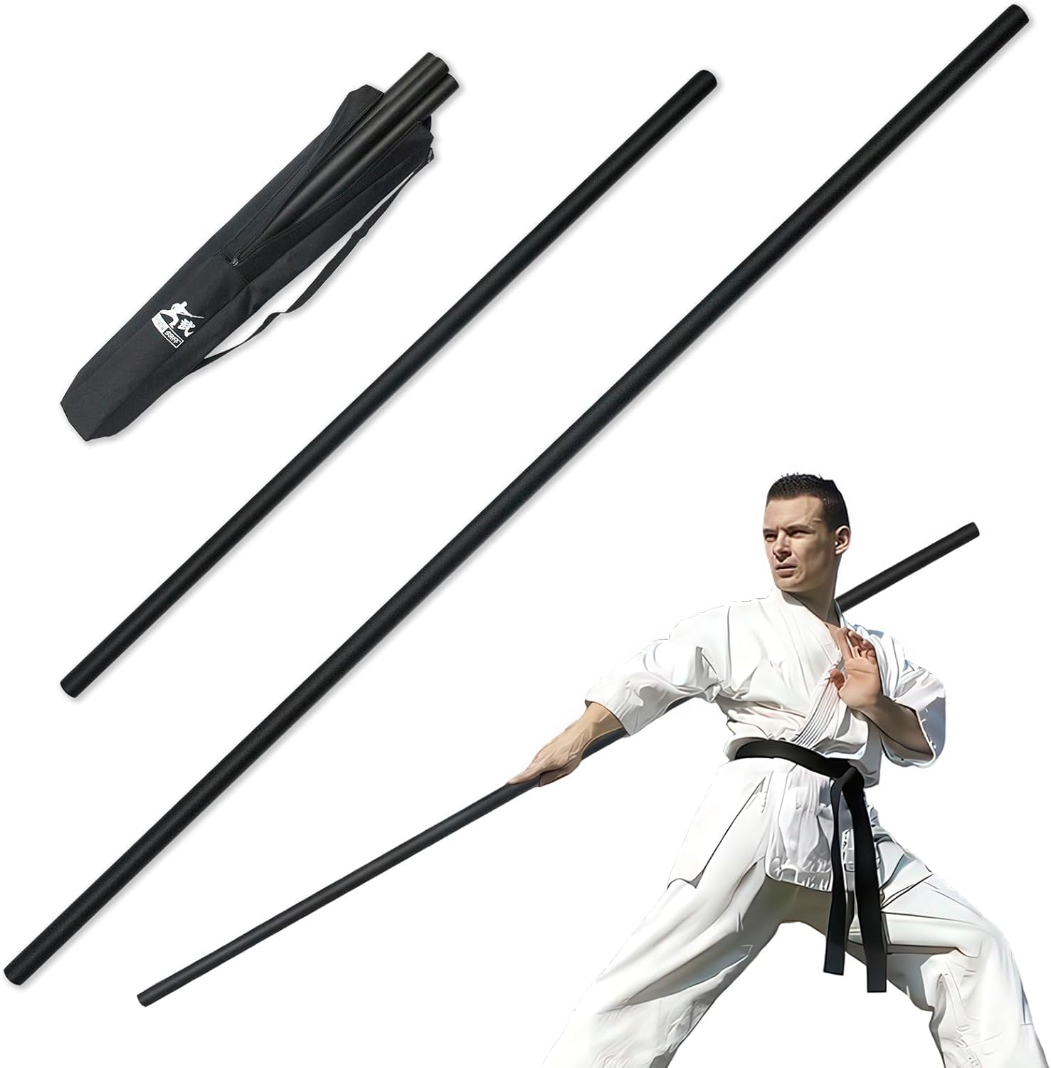 1️⃣ Adjustable Length & Collapsible Design – This bo staff can be assembled into either a 4ft or 6ft length based on your training needs. It easily breaks down into three sections for compact storage and transport. Includes a convenient carry bag.