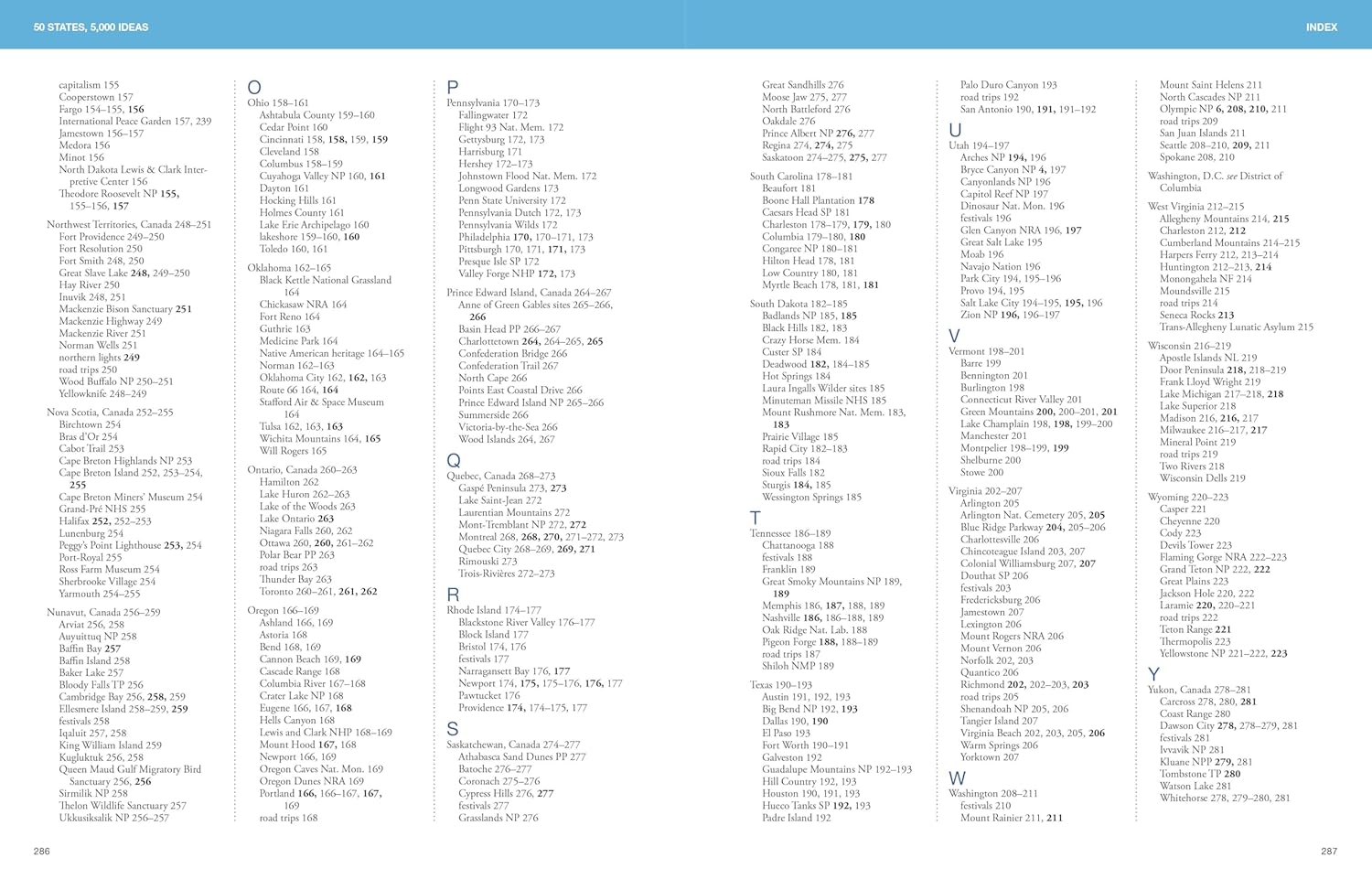 This richly illustrated book from the travel experts at National Geographic showcases the best travel experiences in every state, from the obvious to the unexpected. Sites include national parks, beaches, hotels, Civil War battlefields, dude ranches, out-of-the-way museums, and more. You’ll discover the world’s longest yard sale in Tennessee, swamp tours in Louisiana, dinosaur trails in Colorado, America’s oldest street in NYC, and the best spot to watch for sea otters on the central California coast. Each entry provides detailed travel information as well as fascinating facts about each state that will help fuel your wanderlust and ensure the best vacation possible. In addition to 50 states in the U.S., the book includes a section on the Canadian provinces and territories.