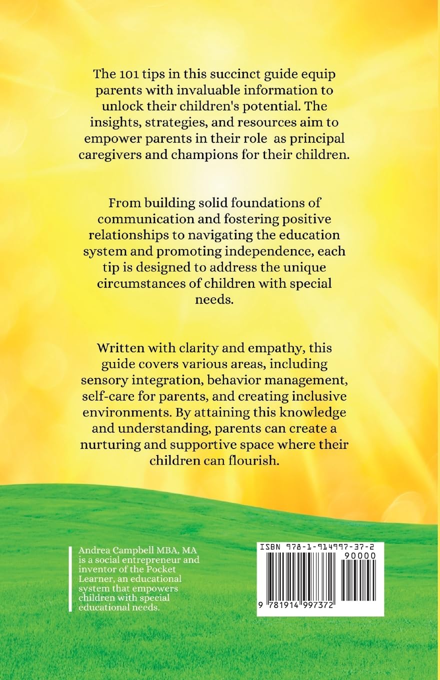 With 101 proven tips, this book covers many topics, including communication, behavior management, sensory integration, and fostering independence. By implementing these research-backed strategies, you will unlock your child’s unique abilities and provide them with the support they need to succeed. From navigating the education system to promoting social connections and building resilience, this guide is your roadmap to creating a nurturing and inclusive environment where your child can thrive.