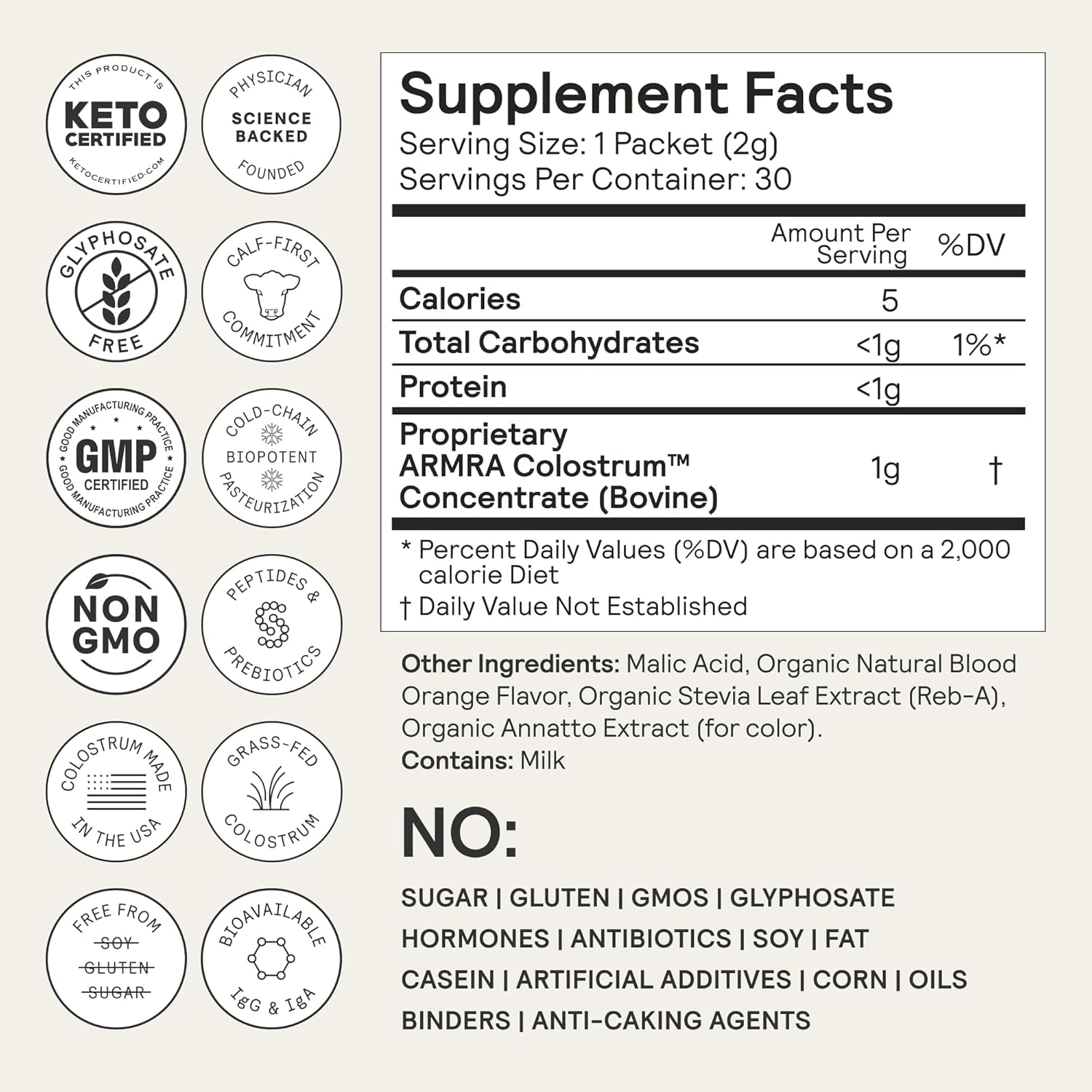 ARMRA Colostrum™ Powder | Blood Orange | Gut Health & Bloating | Skin & Hair | Immunity | Keto, Gluten & Fat-Free | 30 Servings