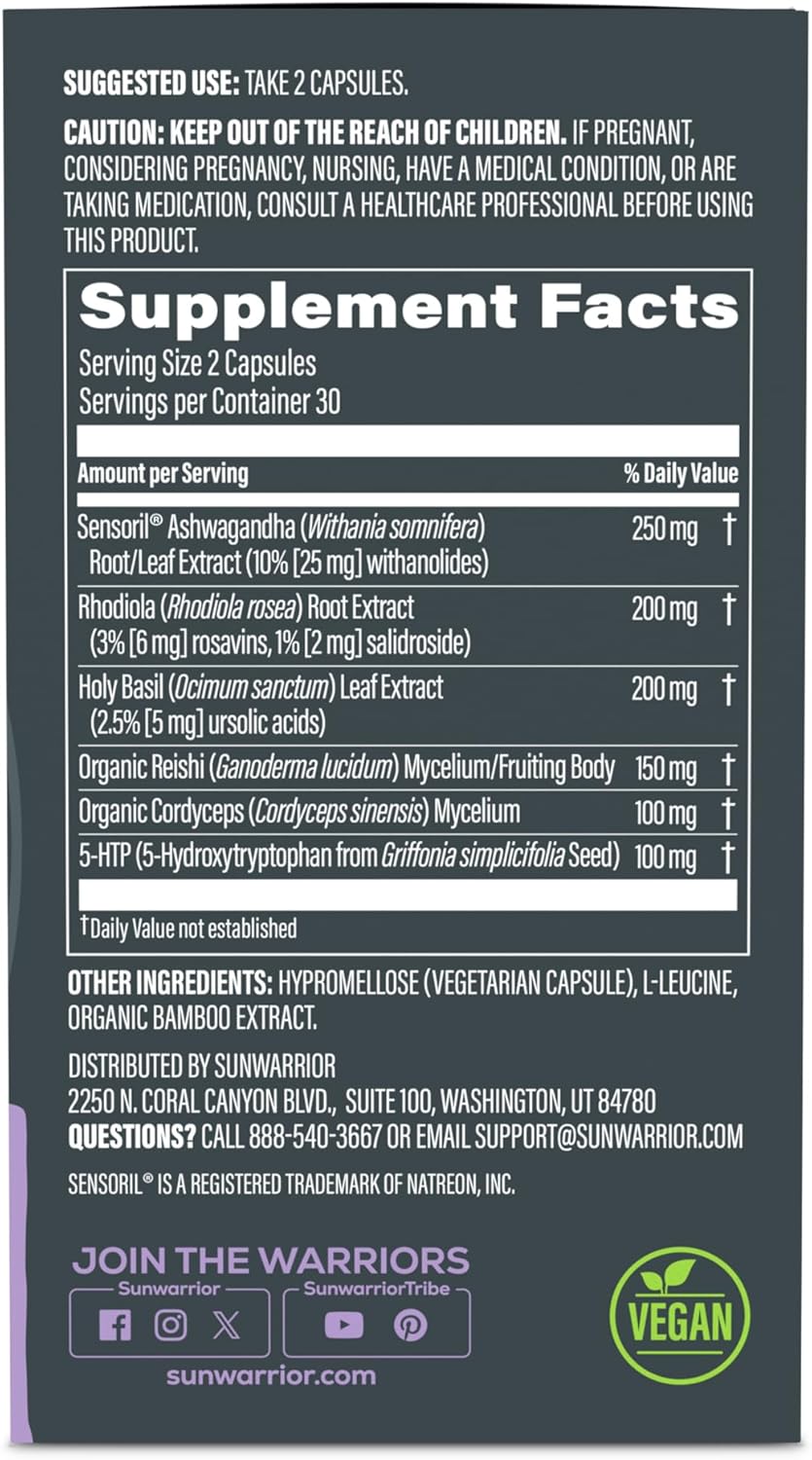 Immune & Mood Support – Reishi and Holy Basil support immune function, while 5-HTP from Griffonia seed helps promote a positive mood and mental well-being.