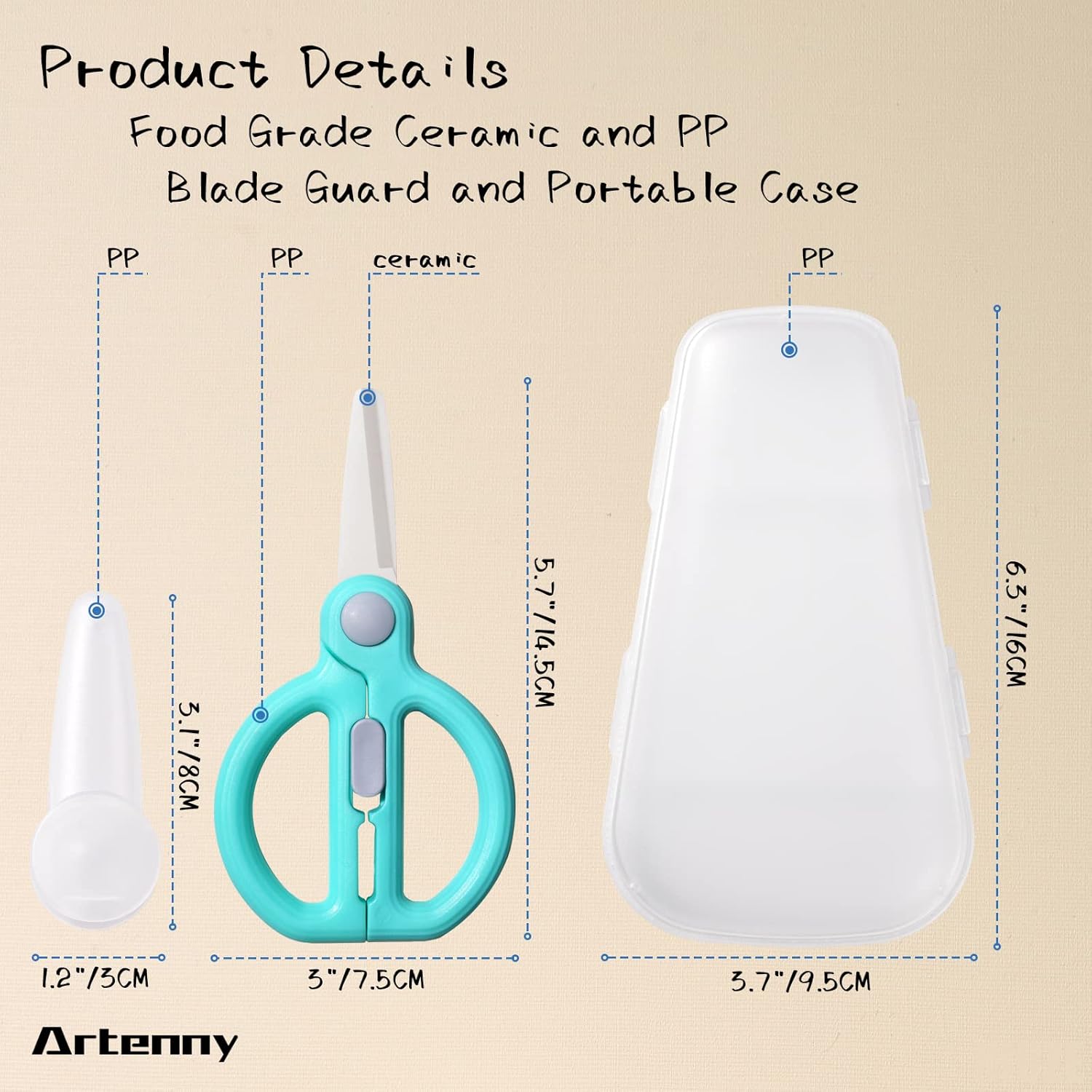 [Ceramic Baby Food Scissors]: Made of premium quality Ceramic. Never rust, easy to clean, no metallic taste and smell, and protect the taste of food