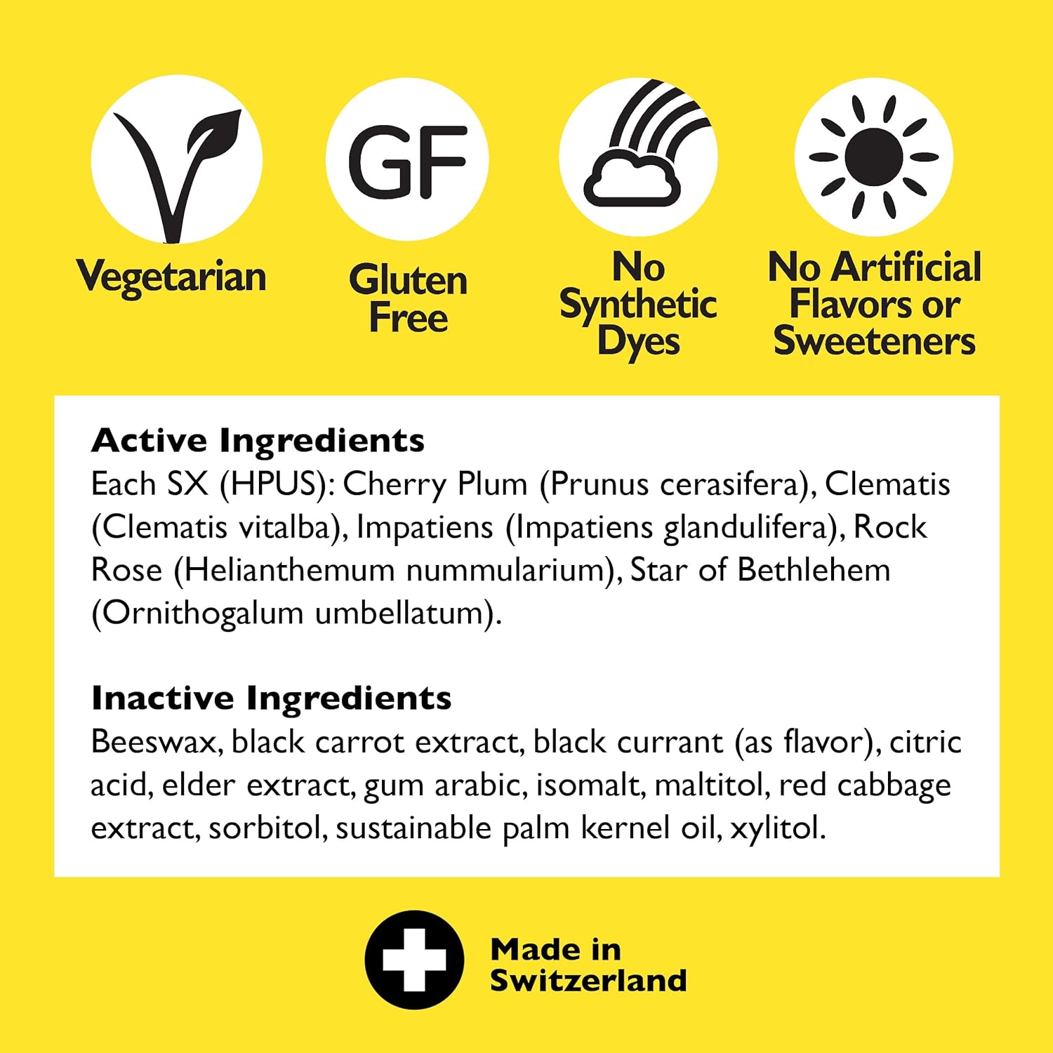 TRUSTED FLOWER ESSENCE BLEND: Plant-based active ingredients, homeopathic, vegetarian. FREE OF: Artificial flavors/colors, gluten, sugar, major allergens. Non-alcohol, non-habit forming