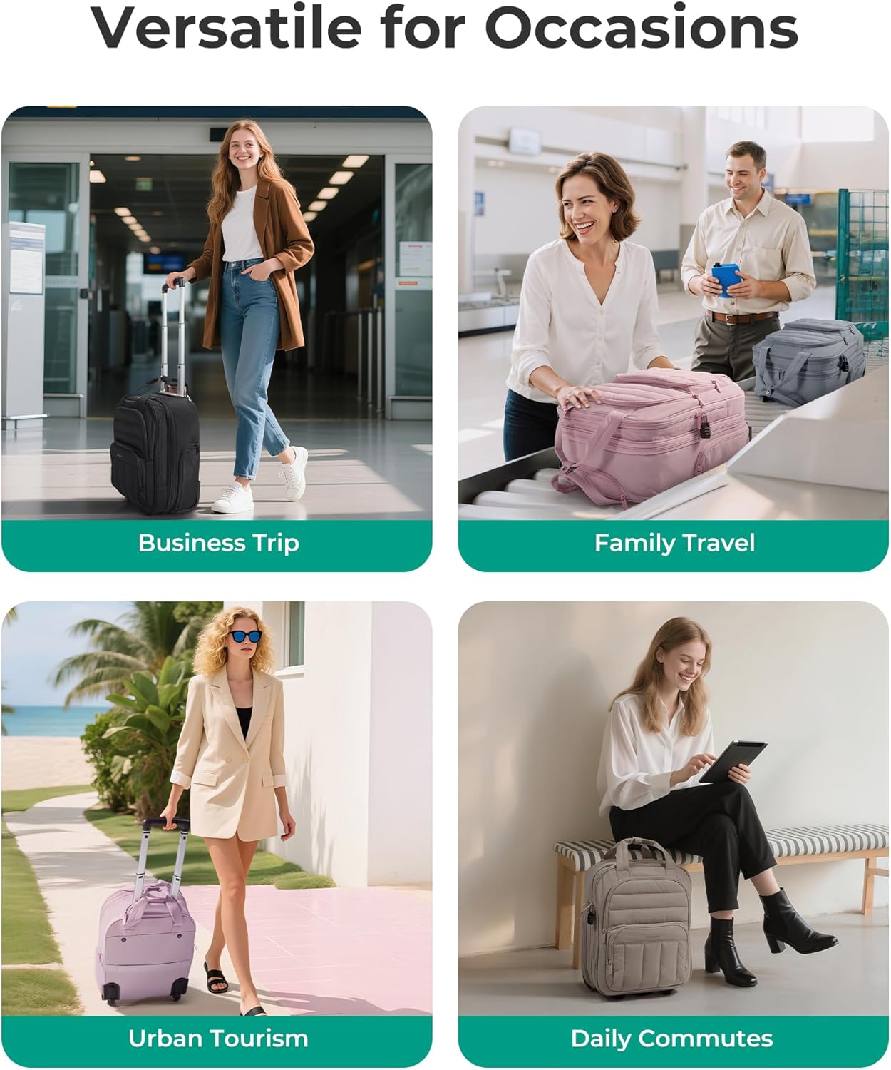 Hassle-free Travel: The luggage strap on the back lets you stack your underseat luggage atop your larger carry-on luggage, while silent double wheels ensure smooth movement in any scenario, no longer burdened by a heavy backpack on your shoulders!