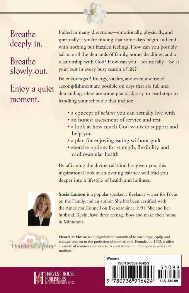 For many Christian women, life seems out of control. The conflicting demands and various pulls on their time seem irreconcilable. Prepare healthy meals, exercise, rest, study and pray, serve, keep the household running, and even manage a career…. How can a woman possibly balance all the demands of a twenty-first-century Christian lifestyle?