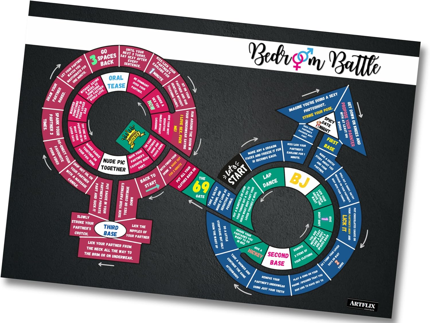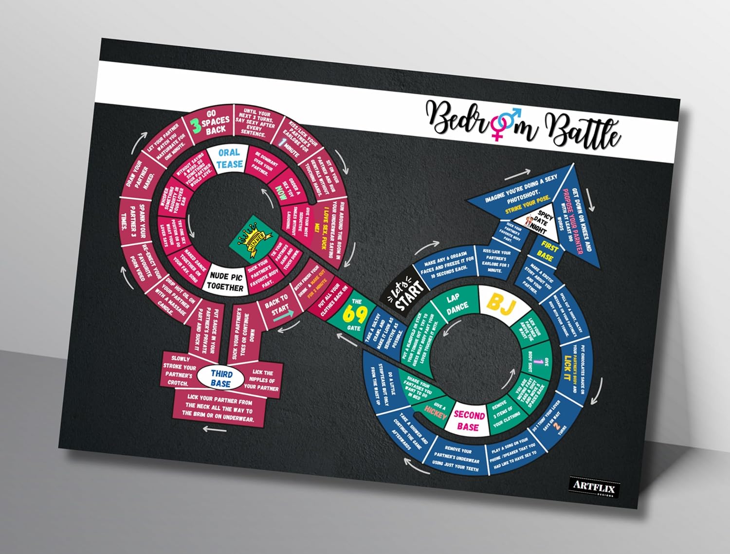 This fun and flirty board game is sure to spice up game nights and date nights. Back to Battle encourages open communication and connection between partners through thought-provoking questions and playful dares. Players navigate the board learning more about each other’s desires, boundaries and what truly makes their relationships strong. A perfect gift for couples wanting to foster greater intimacy, it’s a lighthearted way to explore likes, discuss needs and find new ways to understand each other on a deeper level. With challenges that are sometimes silly, sometimes sensual, Back to Battle is guaranteed to bring players closer together whether you’re just starting out or have been together for years. Play requires an open and trusting mindset but rewards with sweet surprises and memories to share for anniversaries to come.SPICE UP YOUR NIGHT: Back to Battle Board Game offers a fun and engaging way for couples and friends to learn more about each other through thoughtful questions and intimate challenges.Unique and Elegant Design: Featuring a sleek and modern look, the game pieces and board are crafted with attention to detail, making it a beautiful addition to any game collection.