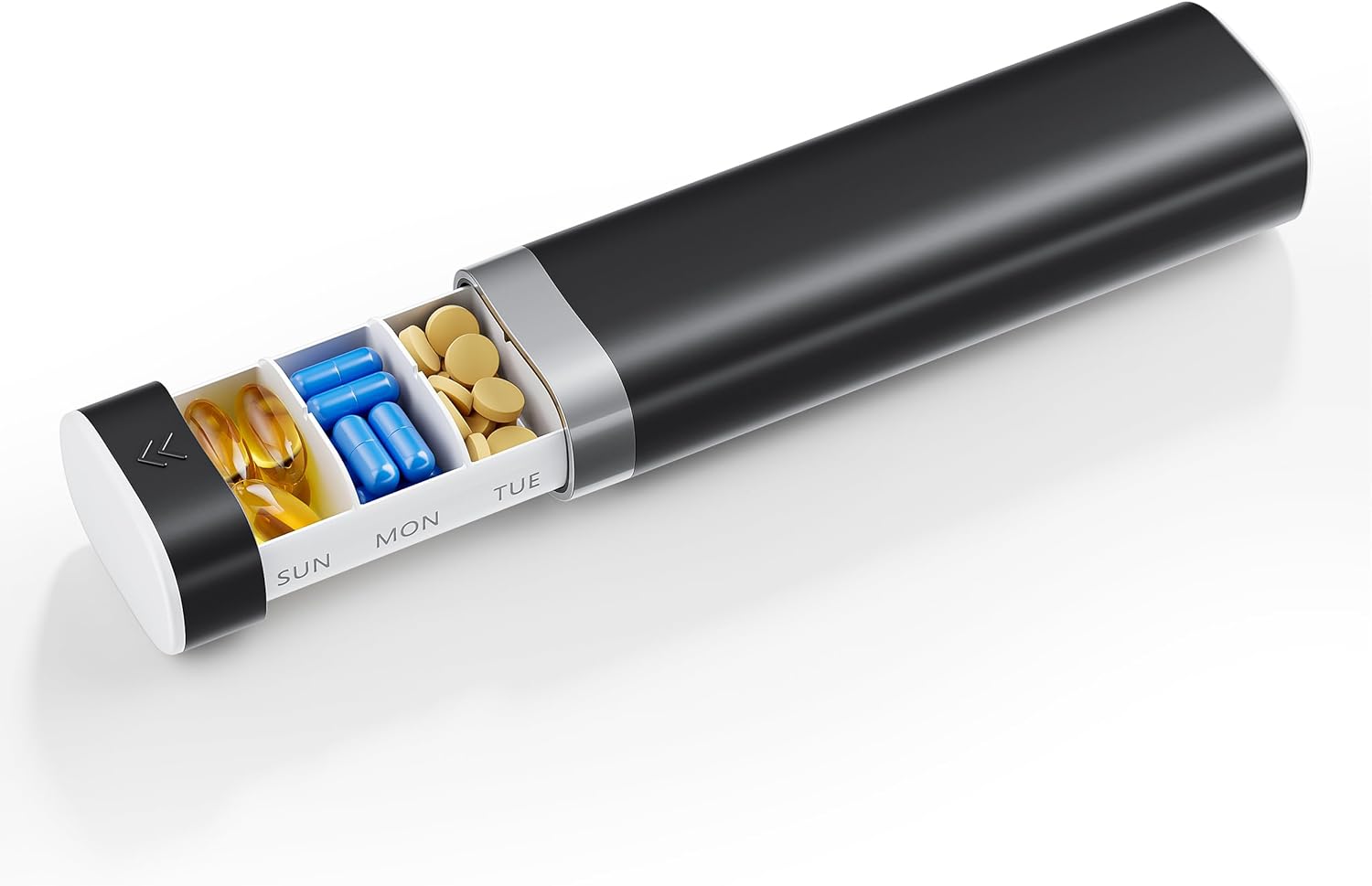 Betife Travel Pill Organizer Weekly 7 Day, Compact Daily Pill Box, Portable Medicine Case, Cute Pill Holder for Vitamins Supplements, Drawer-Shaped Pills Organizer (Black)