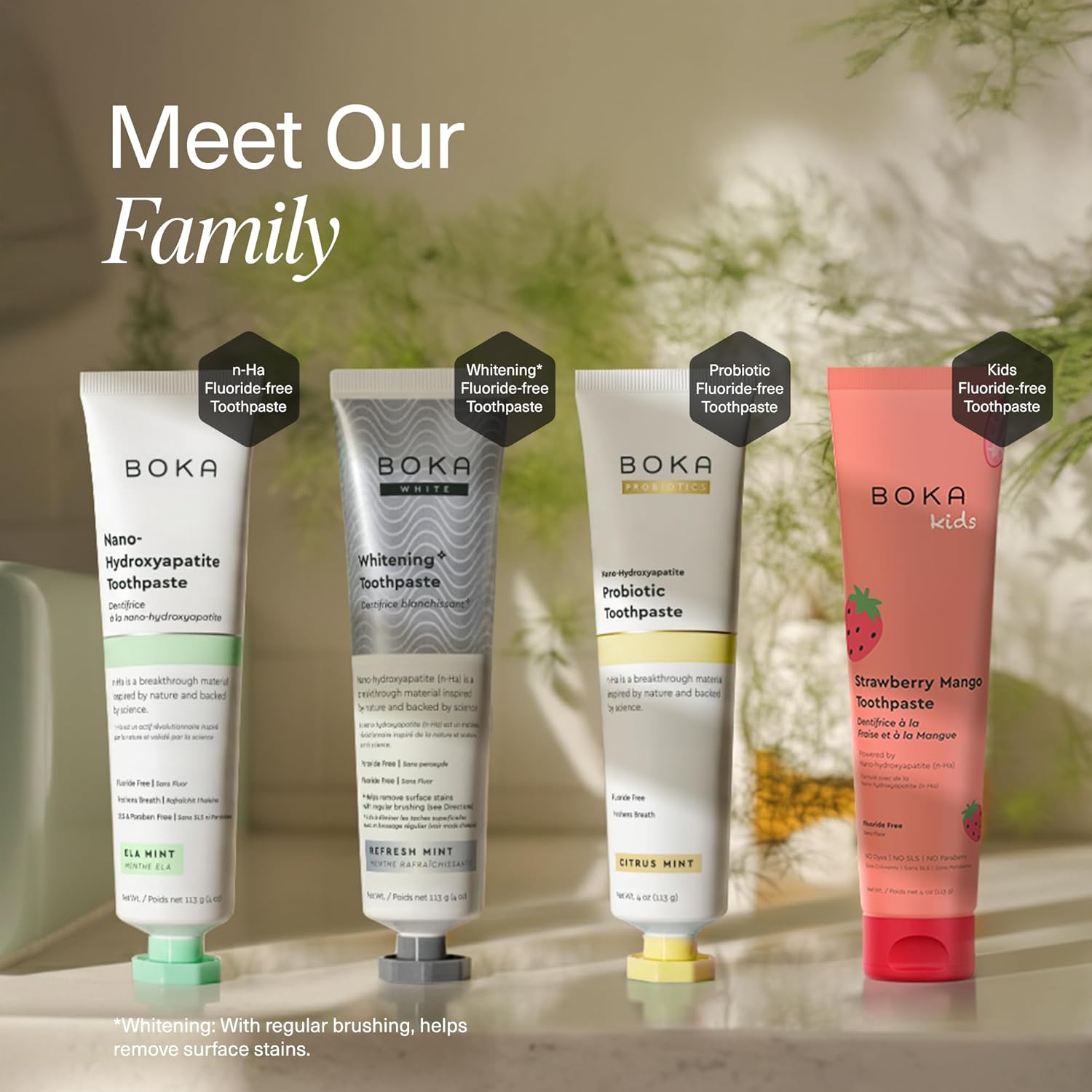 Boka Fluoride Free Toothpaste, Nano Hydroxyapatite Toothpaste, Appropriate for Sensitive Teeth – for Adult, Kids Oral Care – Ela Mint Flavor, 4 Fl Oz 1Pk US Manufactured