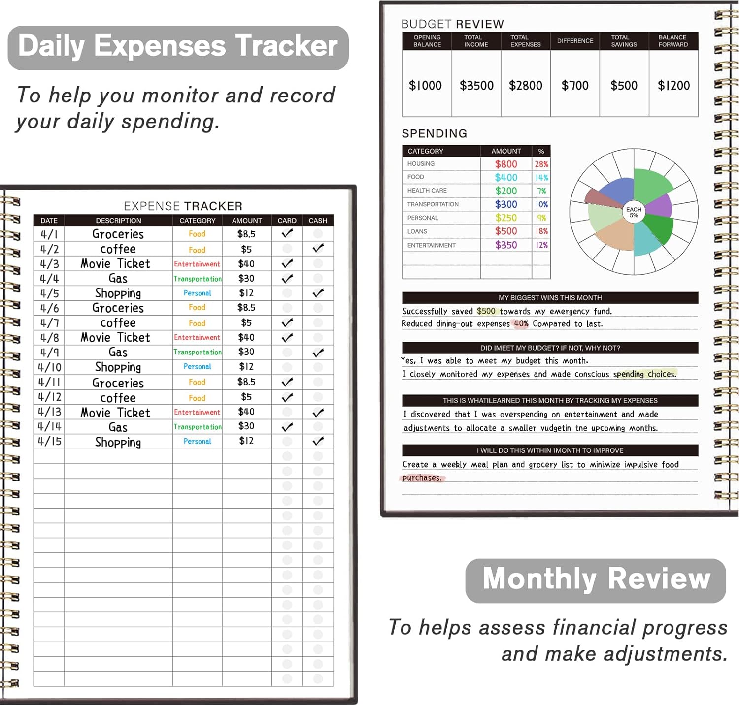Functionality with Style: Our account book not only looks elegant but is also highly functional. With features like an elastic band and double-side pocket, it enhances practicality for effective budget planning. The twin-wire binding allows for 180° layflat, keeping your financial bill calendar plan safe and organized.