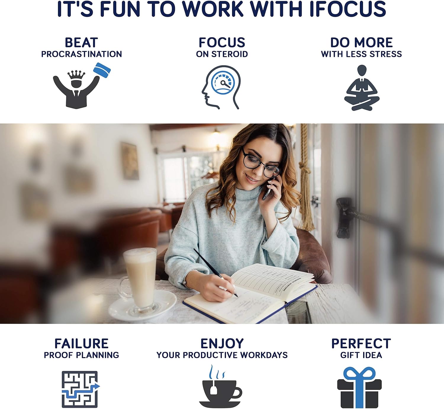 Business Planner Undated for Entrepreneurs! Focus Project Notebook for Productivity! Daily Weekly Self Organizer Planner / Win the Day! Beat Procrastination! Ifocus – A5 work planner