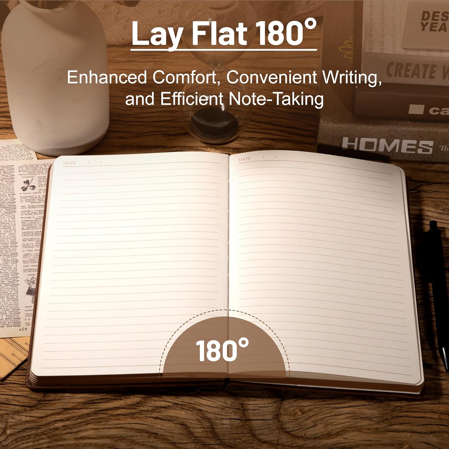 【180°Lay Flat Journal Notebook】: The writing journal 180° lay flat design makes writing easier, reading more convenient, and taking notes more efficient and making it easier to write for both right and left-handed users.
