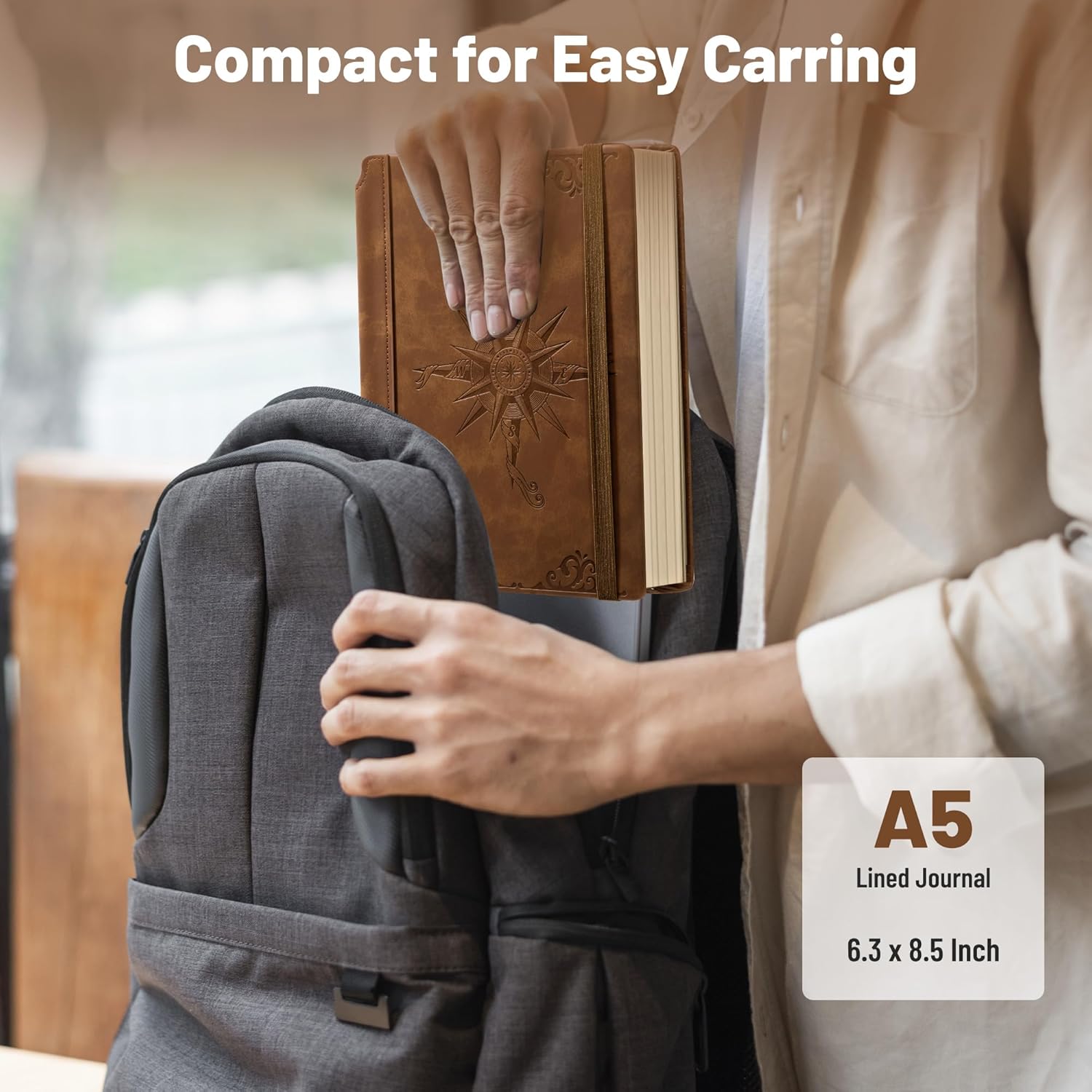 CAGIE Compass Leather Notebook Journal for Men, 100 GSM 288 Pages Lined Journals for Writing, A5 Hardcover Journaling Notebooks Gift Set with Pen for Travel Office Daily Writing