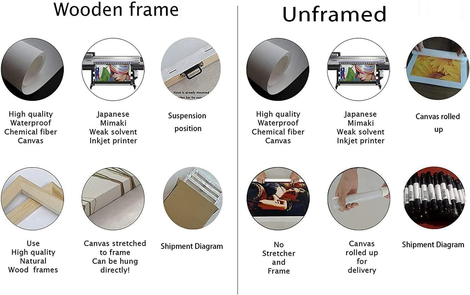 2. This canvas art print looks great on any interior wall. Professional artwork is used for clear, high-resolution images. We focus on every detail of production. Our inkjet printing technology can print very detailed prints.