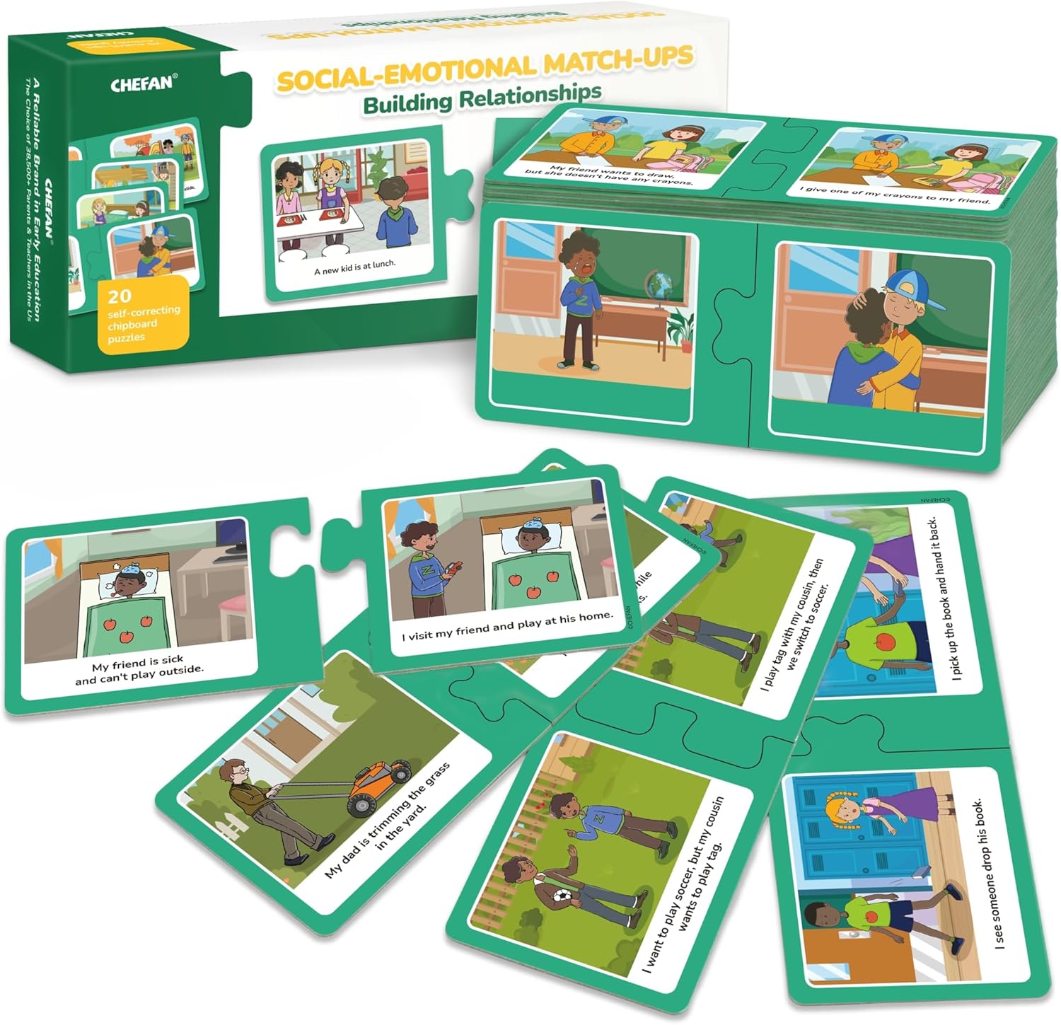 CHEFAN Building Relationships Puzzle Cards, Social Skills, Autism Learning Materials, Speech Therapy Materials, Social Emotional Learning Toys and Games for Kids, 40 Pieces, Ages 3+