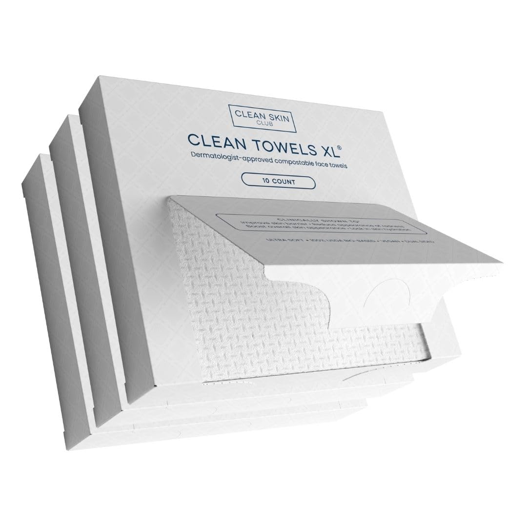 3 packs of Clean Skin Club Clean Towels XL for a total of 30 dry face towels.